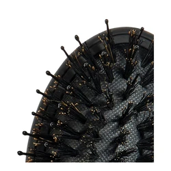 The unique structure of the boar hair bristles carries the hairโs natural oils from the scalp to the end of the hair shaft. By coating each strand with a very small amount of sebum, the brush repairs dry hair reduces frizz, and adds lustrous shine, while the stiff nylon ball-point bristles massage the scalp, increase blood circulation and detangle the hair.