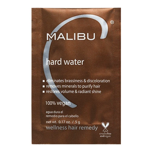 When horrendous hard water gives your hair a truly tough time, this weekly natural wellness treatment restores the life of weighed-down locks for the body, bounce, and sheer brilliance. Malibu Hard Water Demineralizer is a patented, fresh-dried vitamin complex that dissolves into a gel in the palms of the hands forming a rich lathering treatment specifically formulated for hair shampooed in hard water, or exposed to water softeners that use salt and/or phosphates. May be used in the salon, at home, or when traveling to lift surface minerals and oxidizers, remove discoloration, brighten and increase shine/vibrancy, while helping to prevent damage from environmental elements in the air and water.